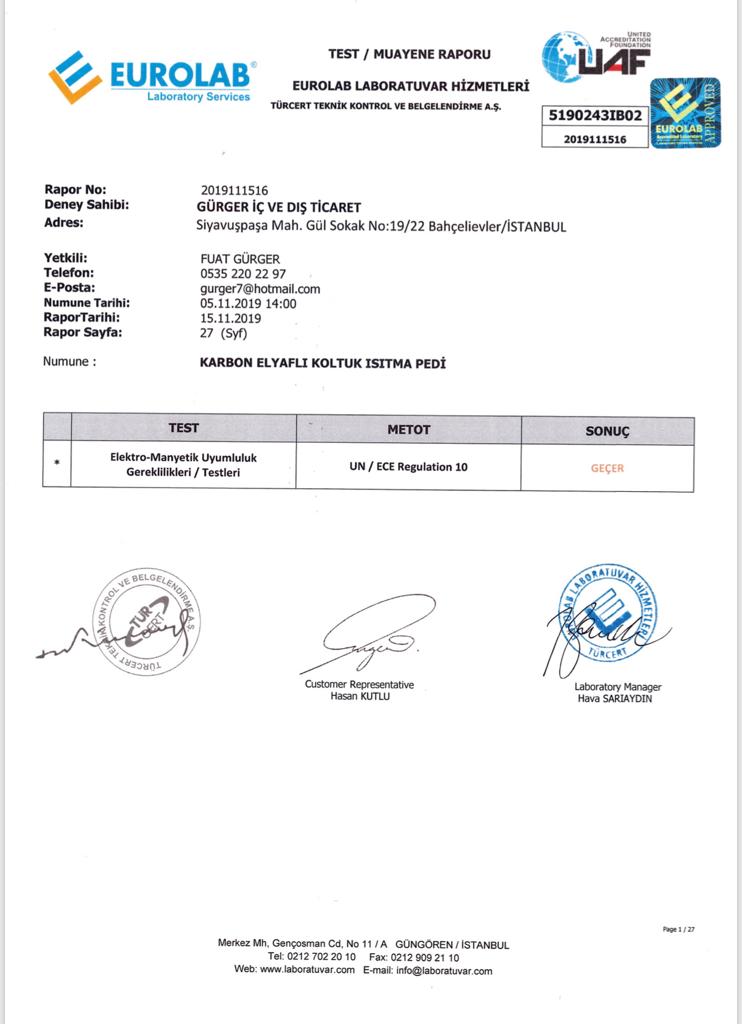 Gurger Heating System has been serving customers with more than 10 years of experience in the automotive seat heating industry.Our heated cushion production based on carbon fiber braided seat heating pads and cable fittings till 2010. In 2013, we started our research and development activities for smart textile (heated clothing systems) and in 2016, our first prototypes were produced both as vests and corsets.We have started regular and mass production of our heated cushion, heated corset and heated cushion very succesfuly. As of 2017, we have added safety switch (weight sensor) to our product range in use of forklifts and heavy construction equipments.As of 2018, we started our production of heated vests, heated corsets, heated cushion products with 5 volts.